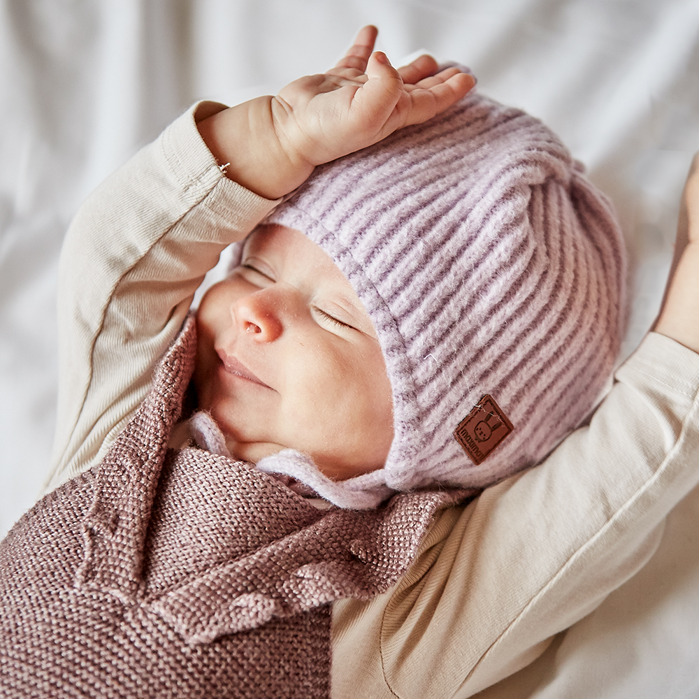 Baby-Rippmütze mit Jerseyfutter - rosameliert
