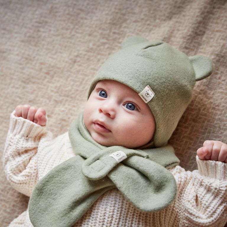 Produktinformationen "Baby-Steckschal aus Baumwollfleece - mineral-hellbraunmeliert"
