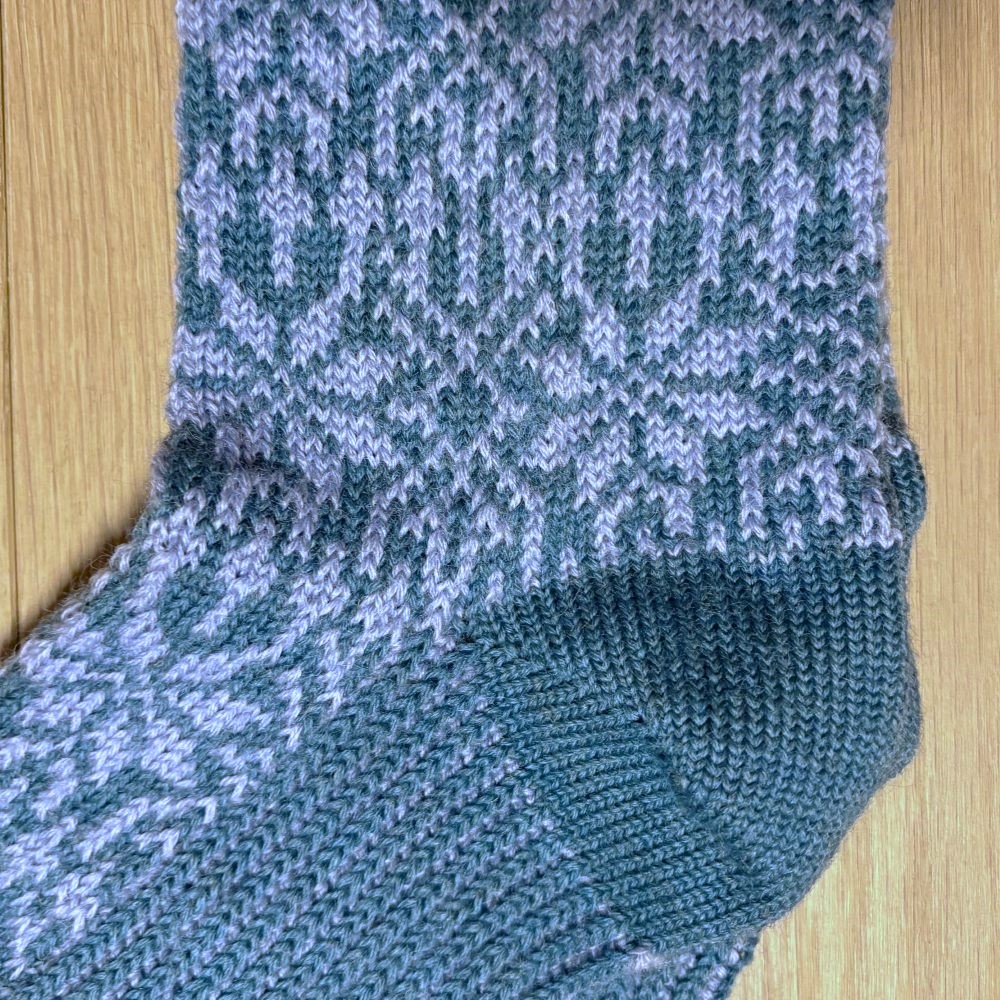 Durch das breite Bündchen sitzten die Wollsocken gut und die gekettelte Spitze sorgt dafür, dass Druckstellen vermieden werden.