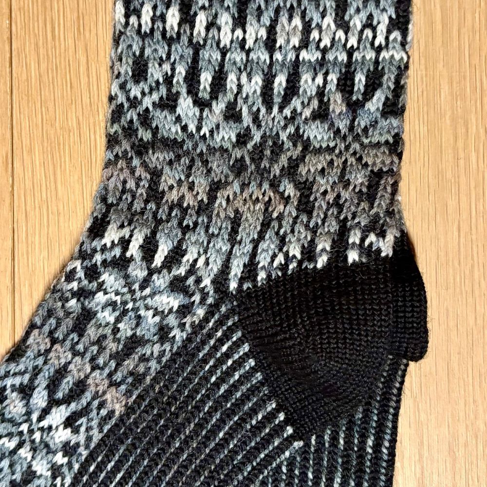 Durch das breite Bündchen sitzten die Wollsocken gut und die gekettelte Spitze sorgt dafür, dass Druckstellen vermieden werden.